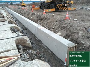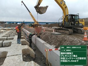間詰工が浸食されないように巻止を据付します。プレキャスト巻止を設置し