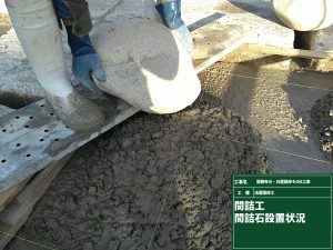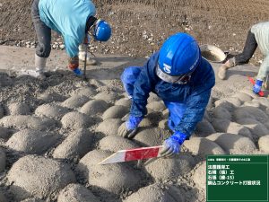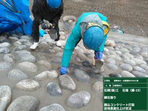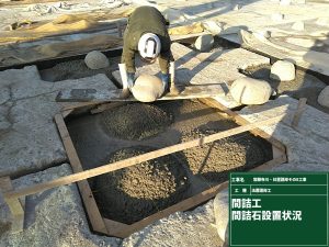 10月27日から11月13日頃は、間詰工の型枠組立・目地材設置を行い、コンクリートを打設して間詰石(控え45cm)を配置しました。