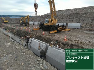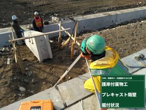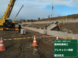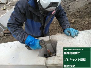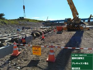 10月29・30日護岸付属物工の巻止延長80m据付完了しました。