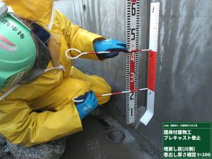 12/4から12/5まで4箇所の隔壁ブロック据付・中詰コン打設を行いました。