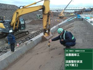 ICT施工とは、3次元設計データを活用したICT建機により、高精度な作業が可能となり、作業効率が大幅に向上します。