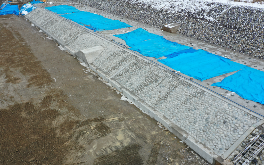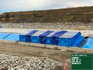 12月10日より開始し、12月22日(現在)8割程度施工完了しております。年内には石積工が完了予定しております。