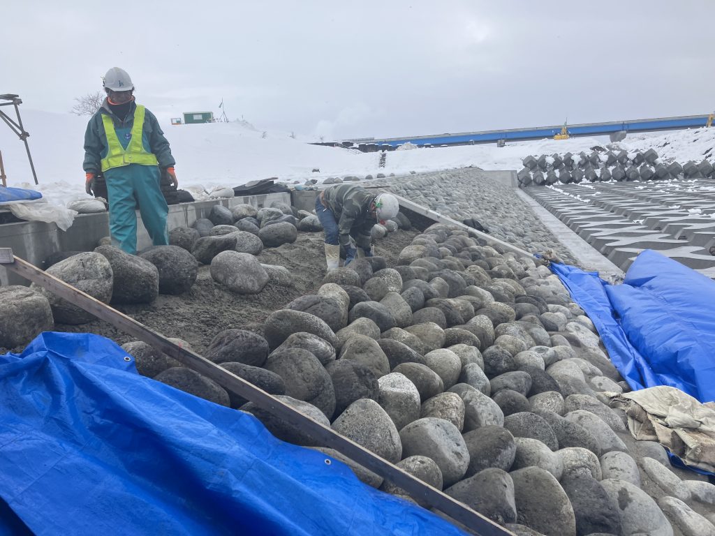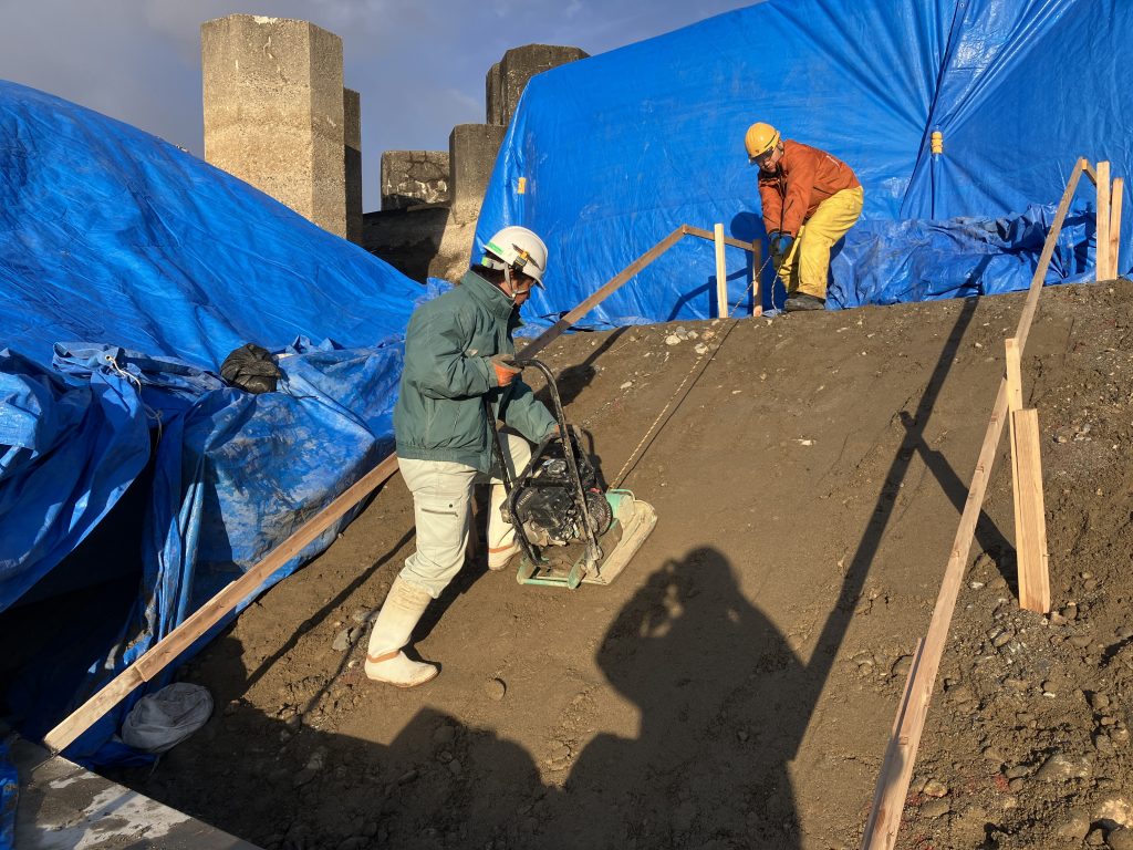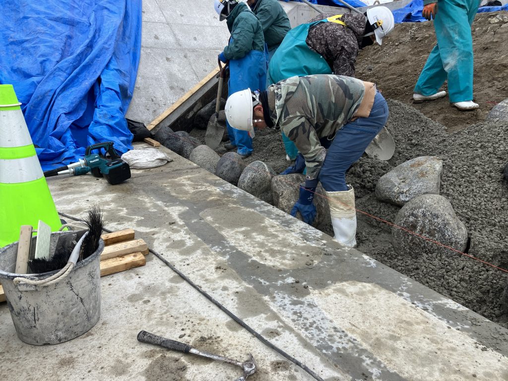 本日の作業は、護岸上部の施工に取り掛かっていきます。