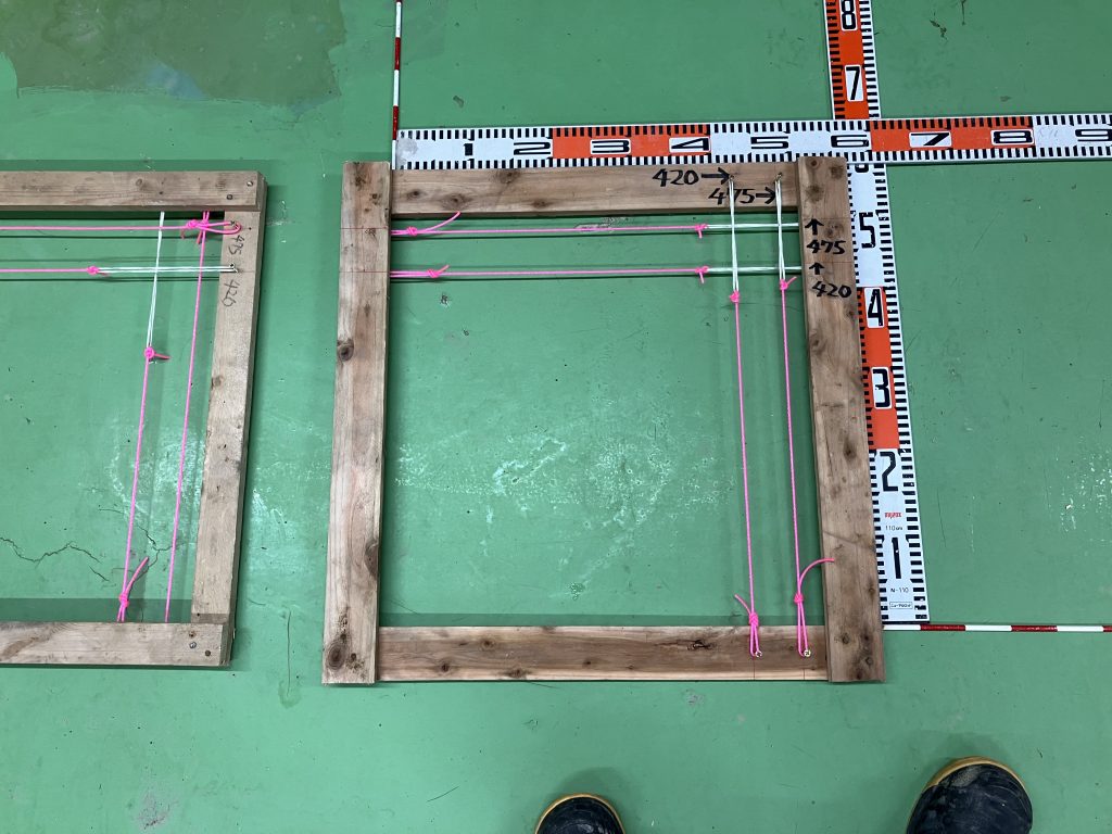 本日の作業は、掘削と根固めブロック製作のための型枠組立です