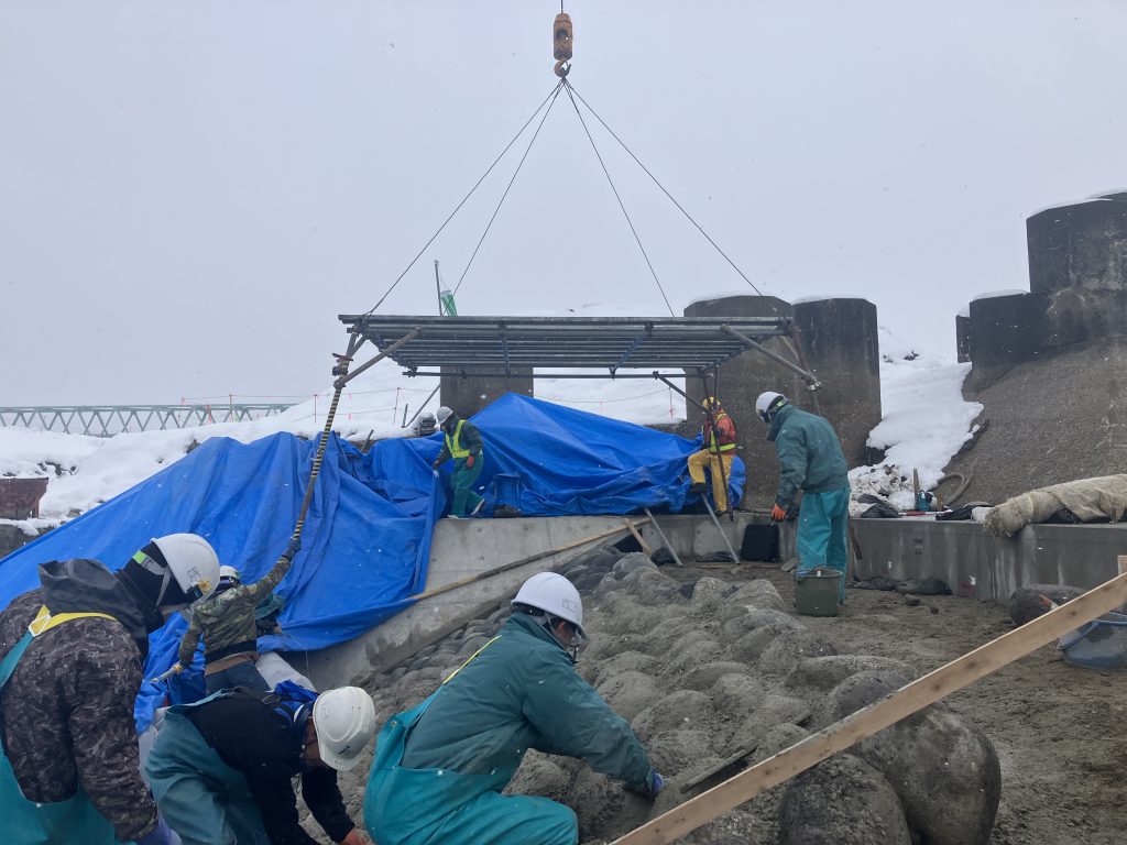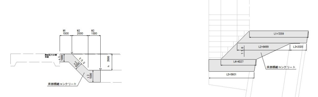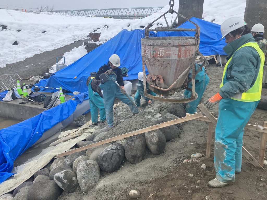 今回の床版根継コンクリート工は、この巨大水制の根継を行い