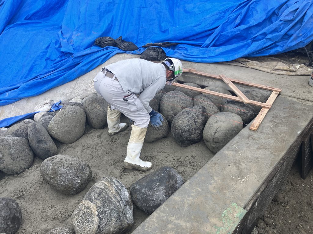 大きさが45㎝程の自然石をくっつけて隙間なく整然と並べていき、