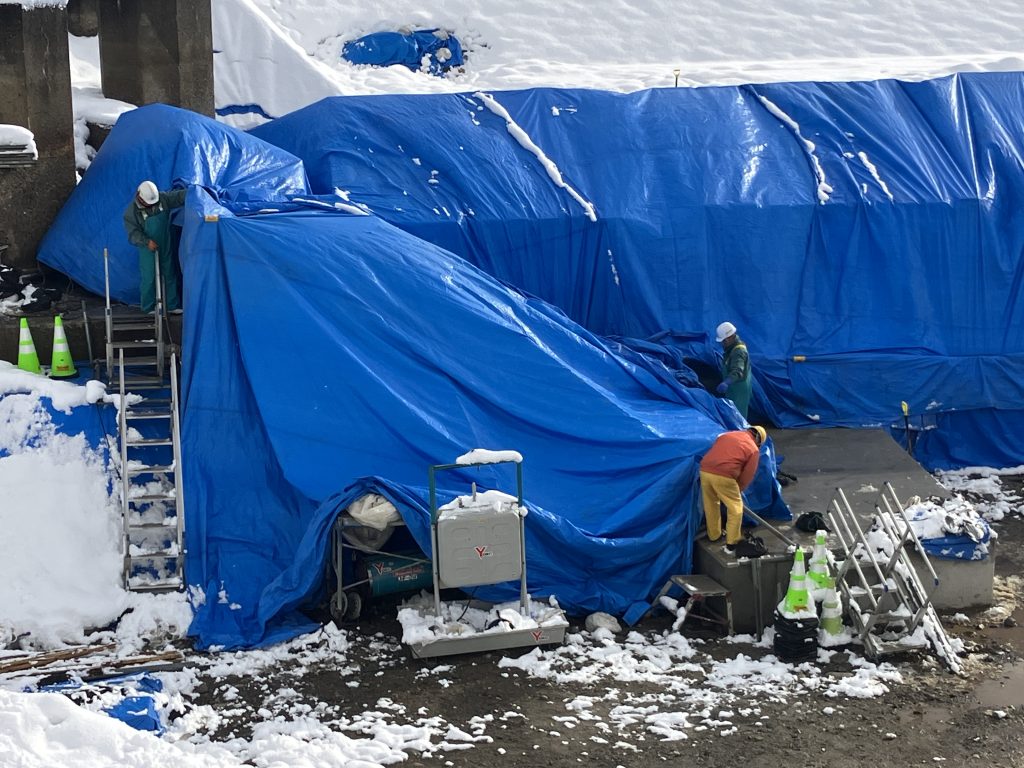 コンクリート養生温度を5℃以上に保つ養生も行っています