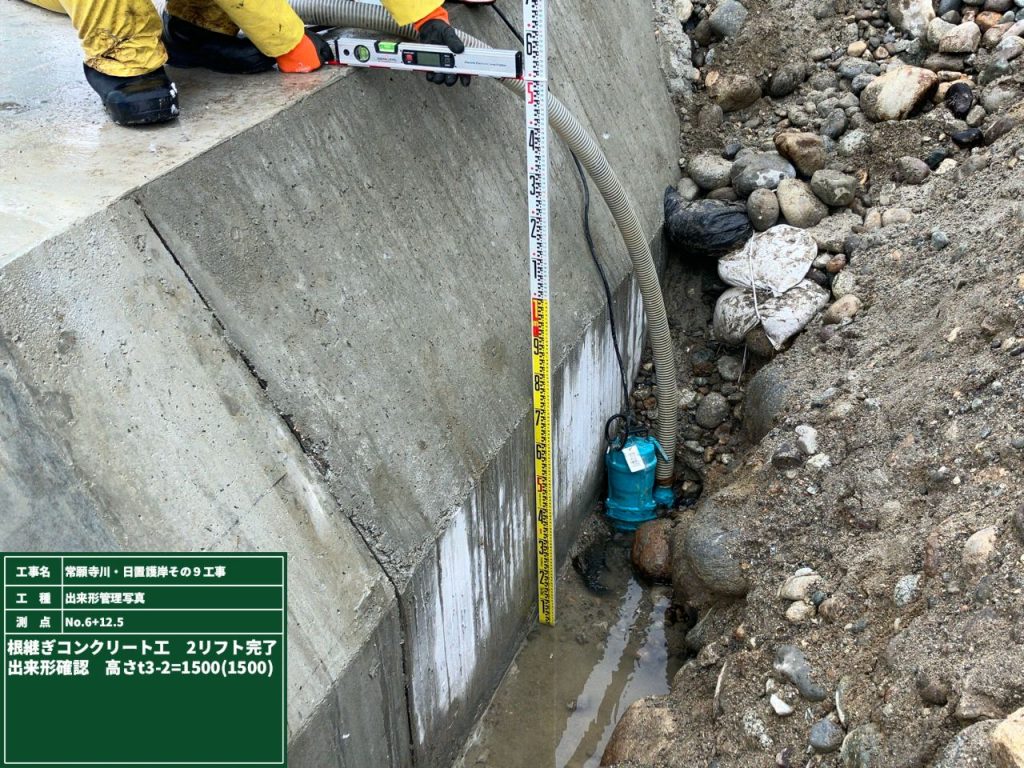 施工場所は地下水位よりも低いので、ポンプ排水を行っています