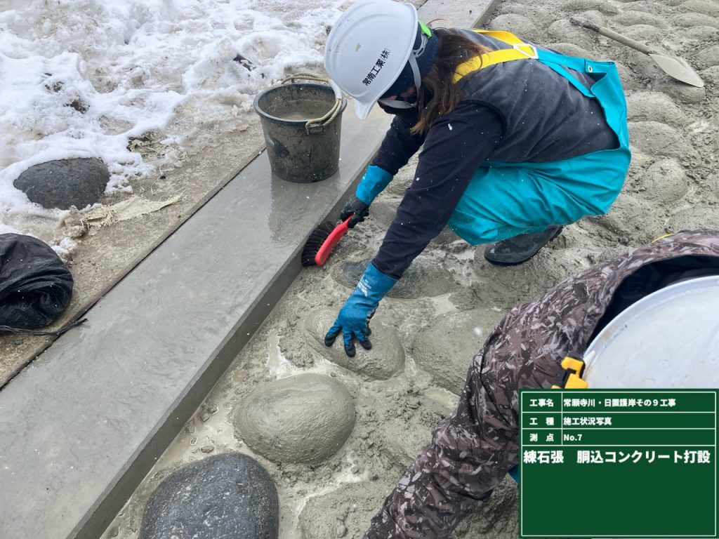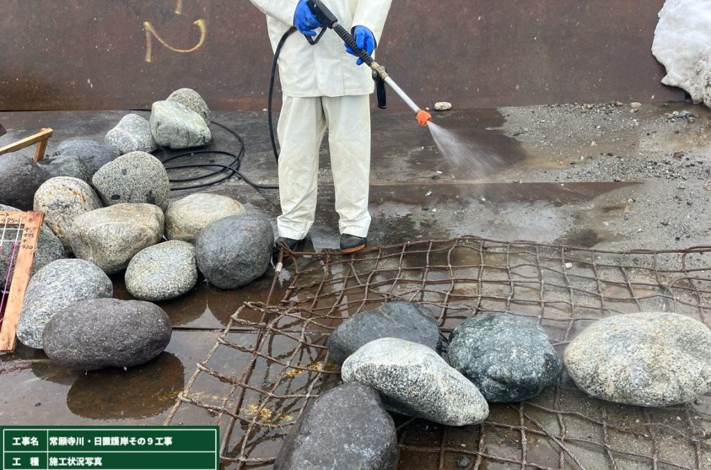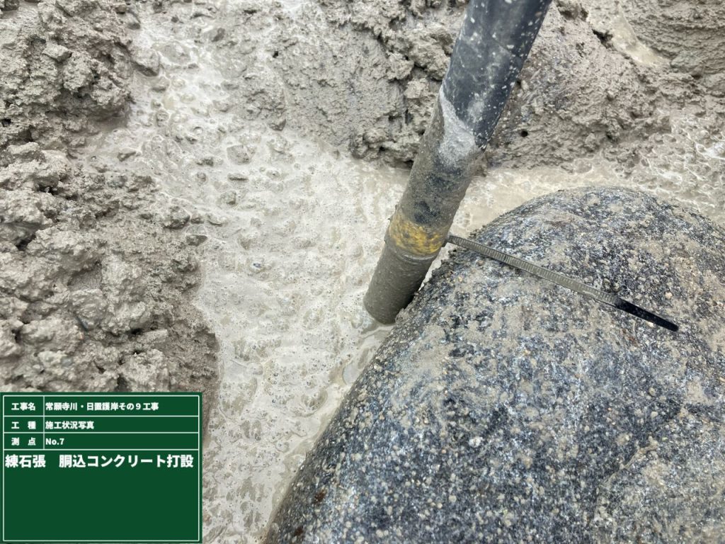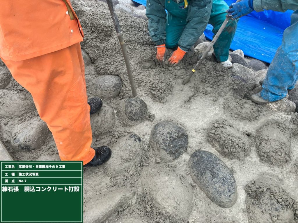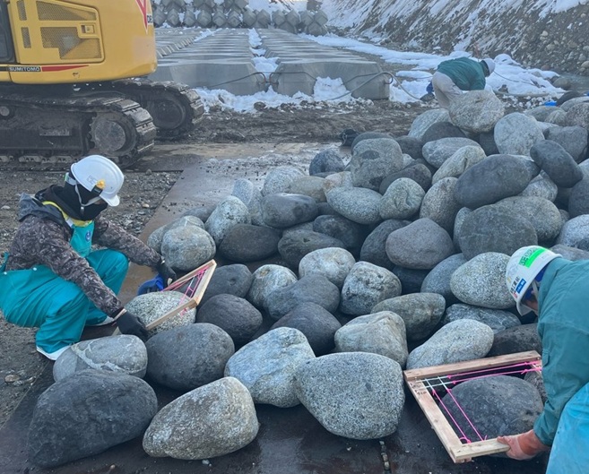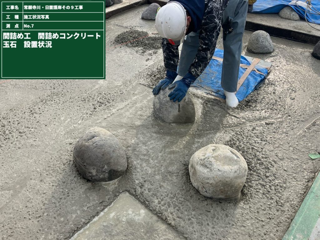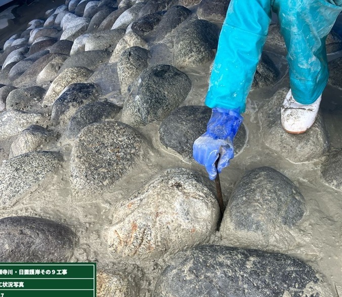 玉石とコンクリートを使った法面を覆う構造物「練石張」