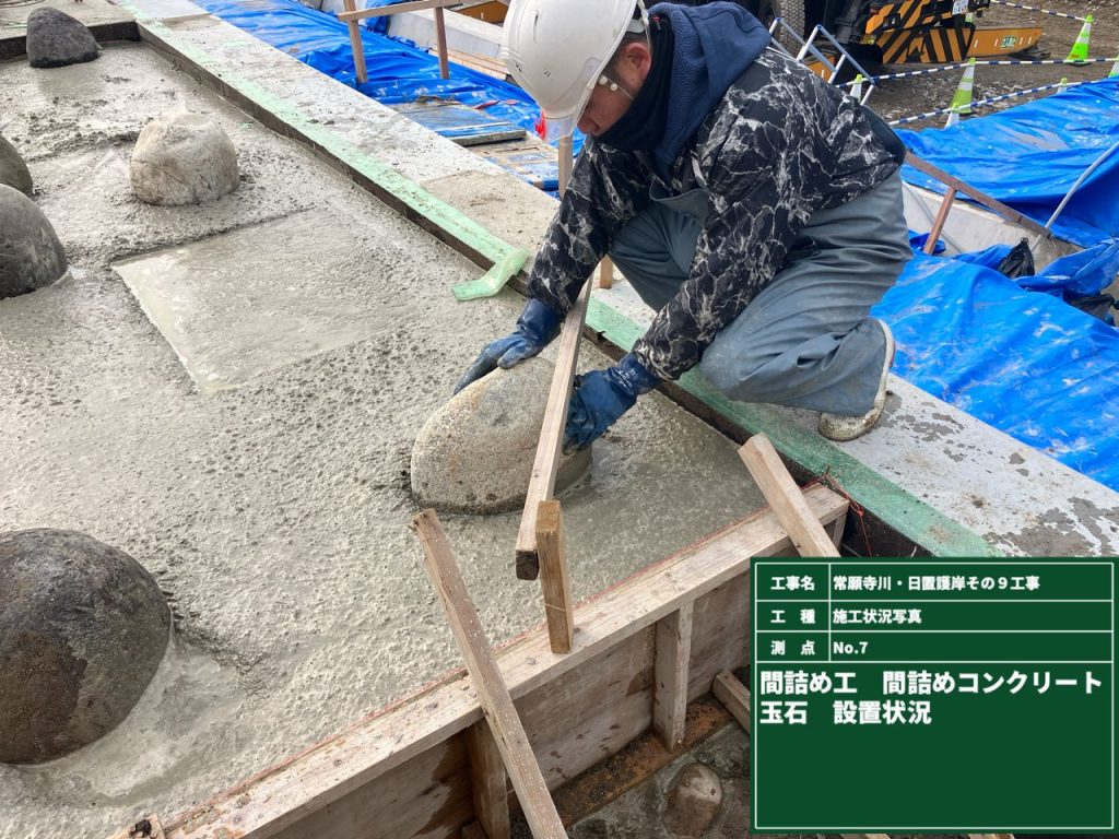 根固めブロックは、護岸構造物が完了次第、その構造物の前面に