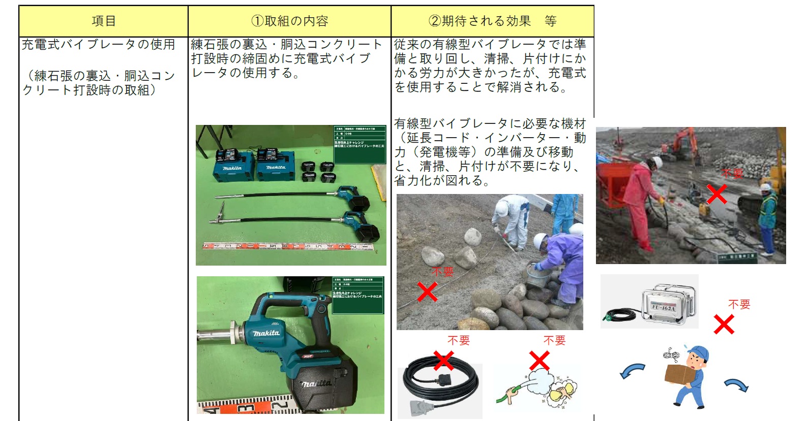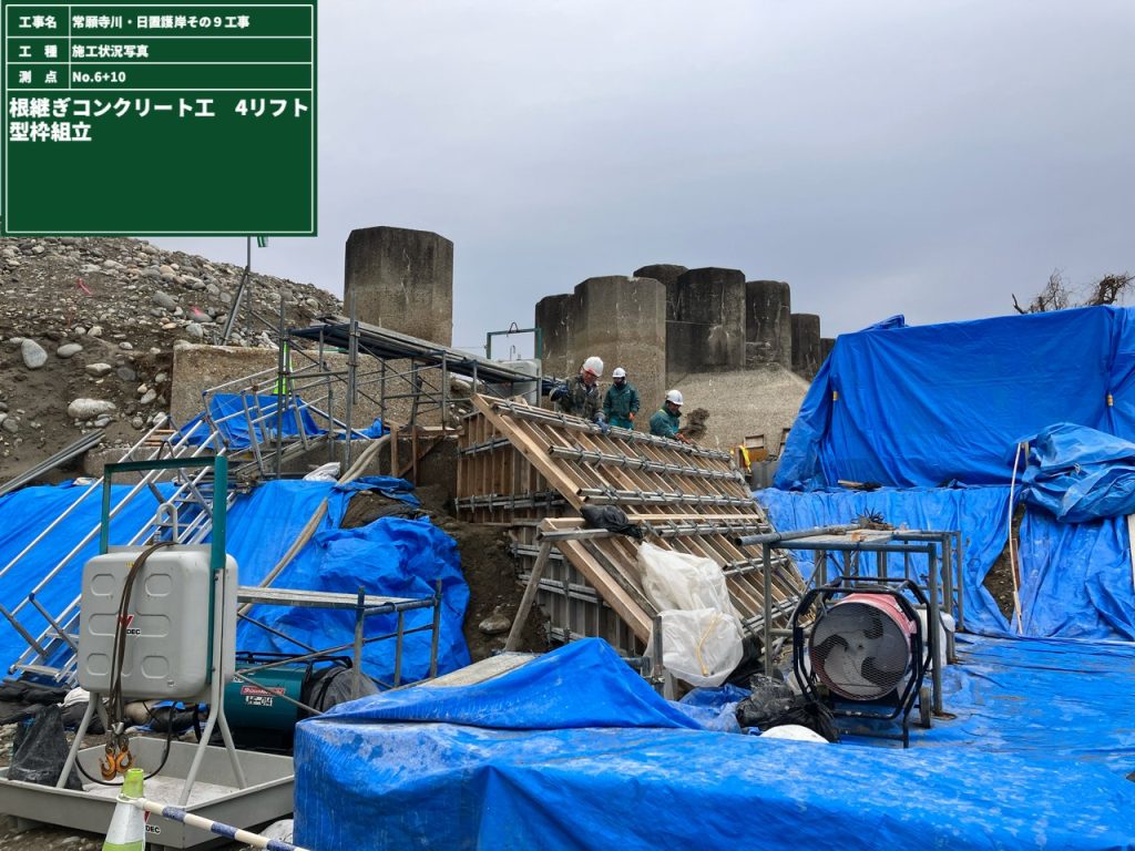 構造物の施工前に行った準備、いろいろな工種をまとめて施工。