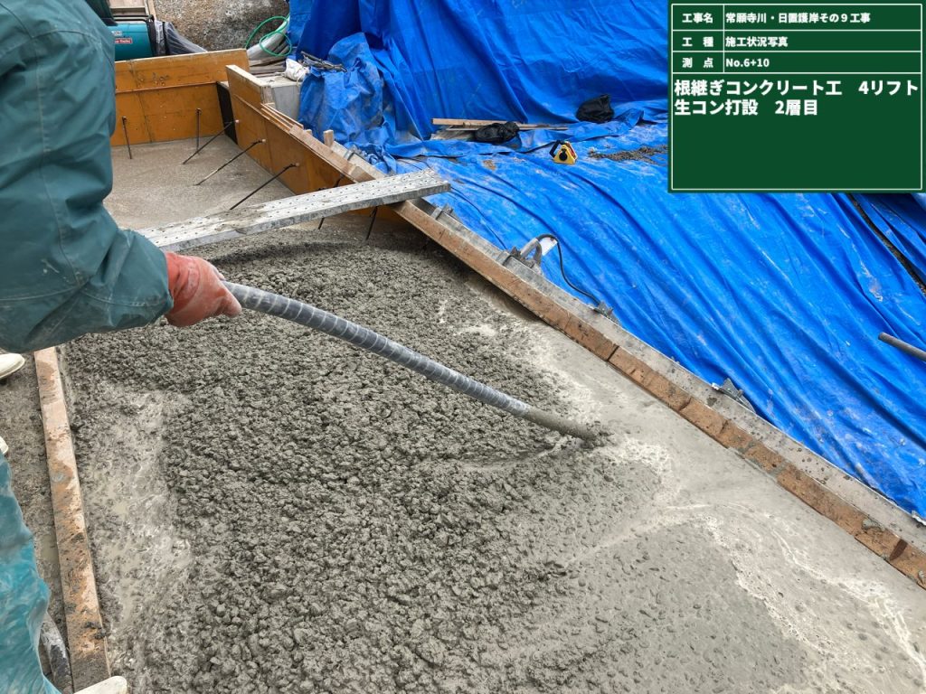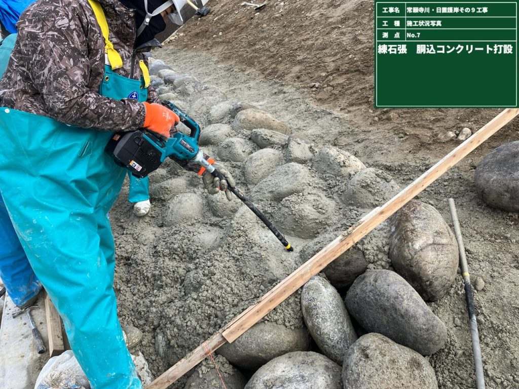 バイブレータで充填出来なかった箇所は、突き棒等で充填します