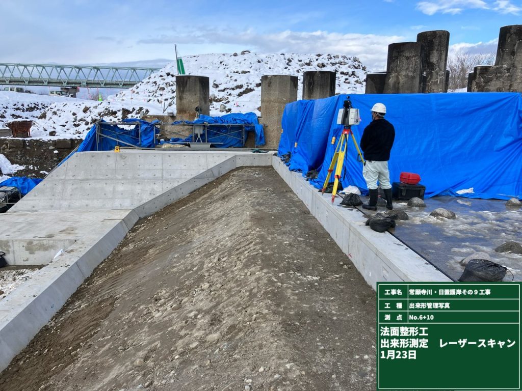 事前に基準点測量を行い、測量の基となる固定点を現地に合っているかを