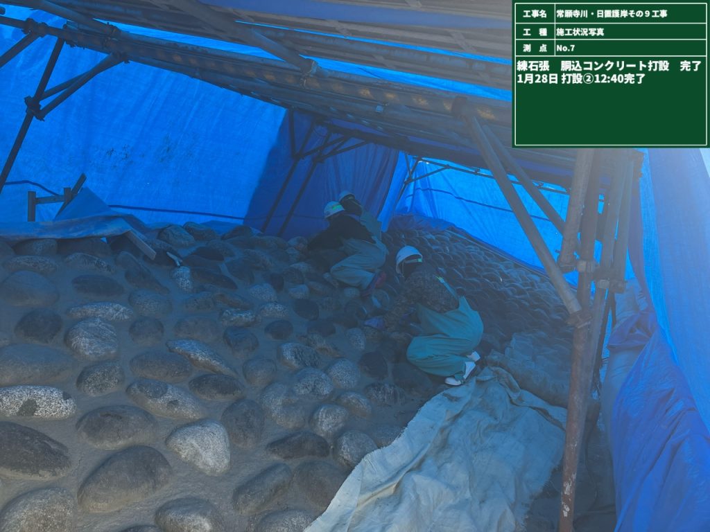 練石張は玉石と生コンを使った強固なつくりとなっています