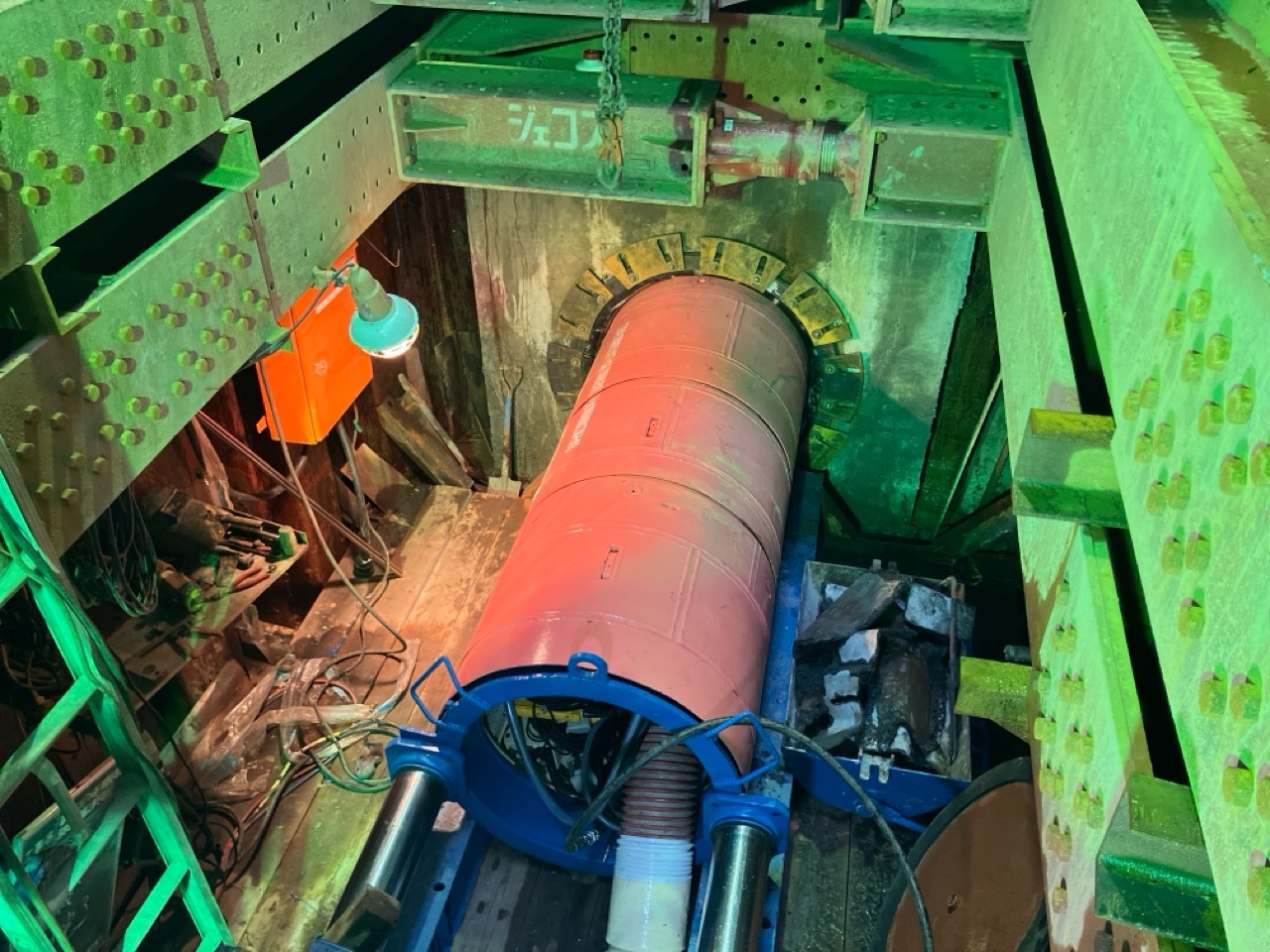 【写真1】M2194-2 推進工 推進施工状況(推進機到達)