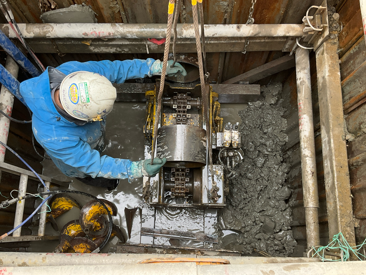 【写真1】M2152-1 立坑工 スライム処理状況①
