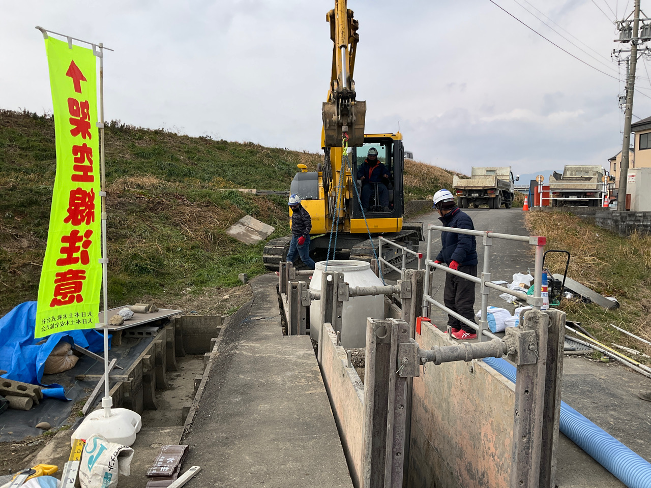 【写真9】開削部施工状況(簡易推進施工状況-ぶるぶる君)