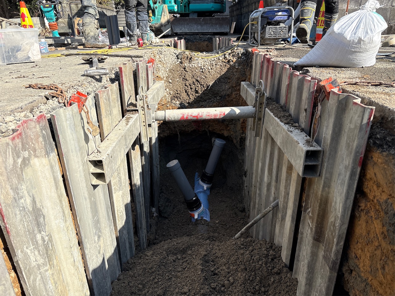 【写真1】M3258-2 立坑工 鋼矢板打設状況