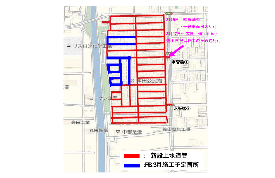 - 水道工事 施工状況位置図 -