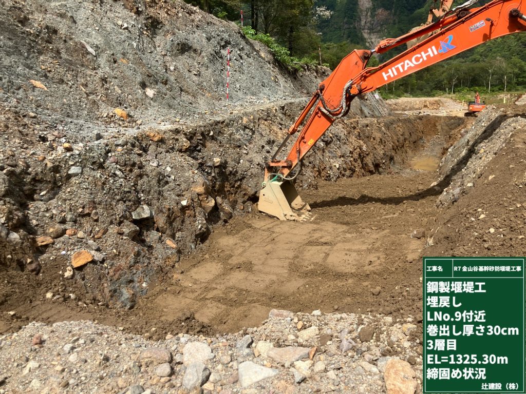 金山谷基幹砂防堰堤工事では床掘りである程度掘り進めてから、粒径処理土