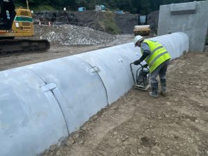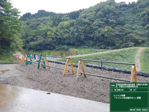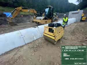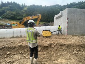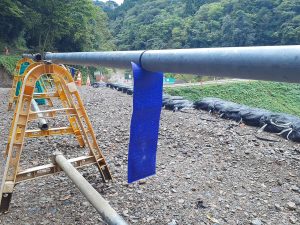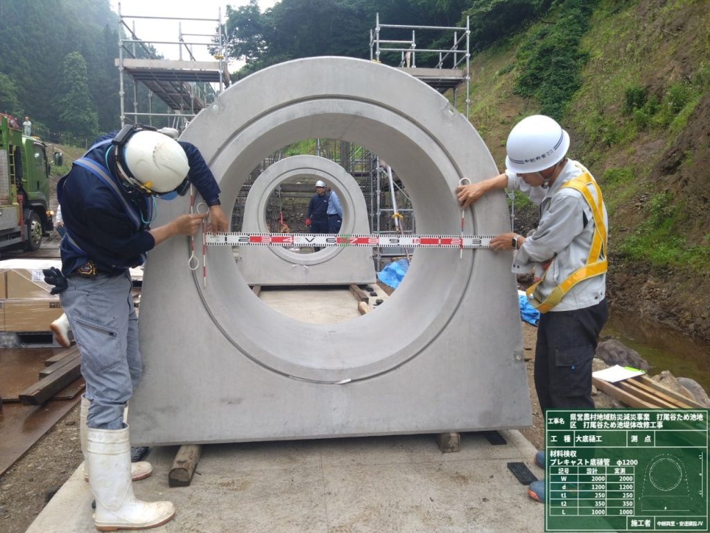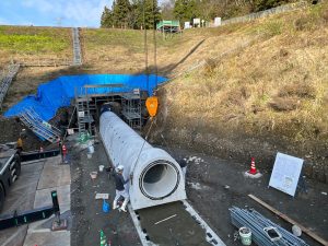 堤体が完成すれば全く見えなくなってしまいますが…。直径1.20mのコンクリート二次製品を一つずつ設置しました。
