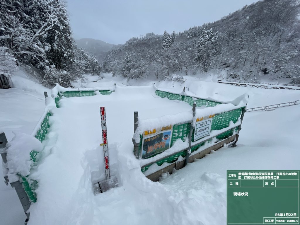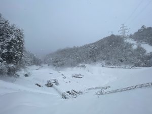 昨日から降り続いた雪ですが、今朝現場見学台に